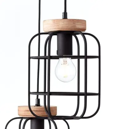 Brilliant Gwen Pendelleuchte Metall Holz Schwarz | 420mm - Geeignet für 3x E27