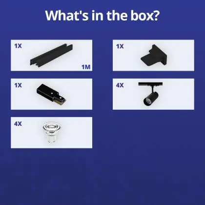 Komplettset 1-Phasen Rail 1 Meter Schwarz | incl. 4x Spot + GU10 2700K 3W Dimmbar + Abschlusskappe, Stromanschluss