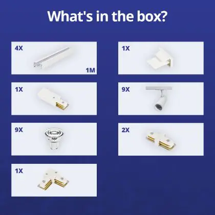 | Herstellername | Complete L shaped 1-Phase Track Set White incl. 9x Spot fixture + GU10 2700K 3W Dim – 2 x 2 meter i | |