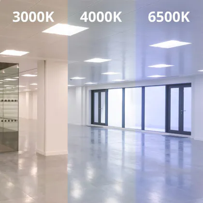 - Farbtemperatur: Bitte beachten Sie die verschiedenen Ausführungen der Farbtemperatur. Das Budgetlight Panel ist in den Farbtemperaturen Warmweiß (3.000 K), Kaltweiß (4.000 K) und Tageslichtweiß (6.500 K) erhältlich.