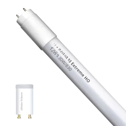 Bei der LED Röhre T8 Extreme (EM/Mains) High Output 11.2W 1575lm - 830 | 90cm - Ersatz Für 30W handelt es sich um eine energieeffiziente LED-Röhre. Sie ersetzt Ihre konventionelle Leuchtstoffröhre mit 30W. Die Röhre ist 908 mm lang und hat die Farbtemperatur 3000K - Warmweiss. Die durchschnittliche Lebensdauer der LED-Röhre beläuft sich auf 50000 Stunden. Wir bieten Ihnen für dieses Produkt eine Garantie von 6 Jahre an.