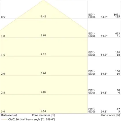 Der IP-Wert zeigt an, wie gut das Leuchtmittel gegen das Eindringen von Feuchtigkeit und Staub geschützt ist. Die erste Ziffer gibt den Schutz gegen Staub an: von 0 = „gar keinen Schutz“ bis 6 = „komplett staubdicht“. Die zweite Ziffer zeigt den Schutz gegen Feuchtigkeit an: von 0 = „gar keinen Schutz“ bis 8 = „geschützt gegen Untertauchen“. Daraus resultiert: Produkte mit einer IP44-Schutzklasse sind vor Spritzwasser geschützt, Produkte mit IP65 oder höher sind (komplett) staub- und wasserdicht. |