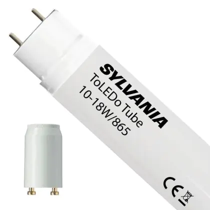 Bei der Sylvania LED Röhre 60cm | 6500K 10W - ToLEDo handelt es sich um eine energieeffiziente LED-Röhre. Sie ersetzt Ihre konventionelle Leuchtstoffröhre mit 18W. Die Röhre ist 600 mm lang und hat die Farbtemperatur 6500K - Tageslichtweiss. Die durchschnittliche Lebensdauer der LED-Röhre beläuft sich auf 40000 Stunden. Wir bieten Ihnen für dieses Produkt eine Garantie von 3 Jahre an.