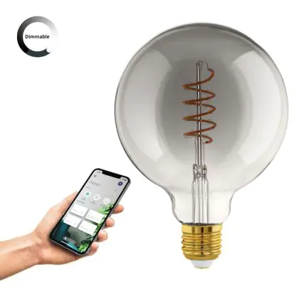 Cette ampoule Eglo Connect.Z Smart LED Globe E27 Filament Smokey 4W 150lm - 820 Blanc Très Chaud | Dimmable - Remplacement 15W est l’alternative idéale pour la remplacement de votre ampoule classique de 15 W. La technologie LED intégrée vous offrira de nombreux avantages. Les ampoules à incandescence traditionnelles ont une durée de vie limitée. Cette alternative LED vous permettra de profiter d’un éclairage durable et fiable.