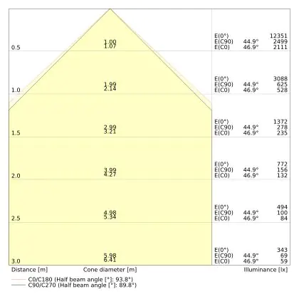 Le code couleur se compose de l'indice de rendu des couleurs (IRC) et de la température de couleur (Kelvin). Le premier chiffre indique le rendu des couleurs (1 = très mauvais rendu des couleurs, 9 = meilleure authenticité des couleurs). Le deuxième et troisième chiffre indiquent la température de la couleur. Exemple : Le code couleur "830" indique que la lampe a un bon rendu des couleurs (8) et une couleur de lumière blanche chaude (30 = 3000K). |