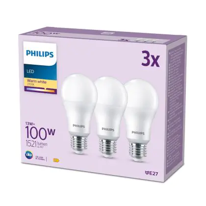 | Nom du fabricant | Box 3 stuks - Philips LED Lamp Mat - 100 W - E27 - Warmwit licht | |