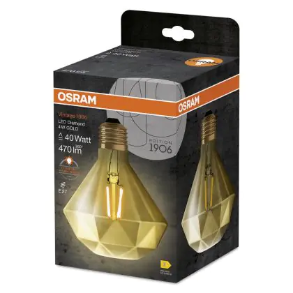 Cette ampoule Osram Vintage 1906 LED E27 Poire Filament Dorée 4.5W 420lm - 825 | Remplacement 40W avec son efficacité lumineuse de lumen par watt vous permettra de profiter d’un éclairage de qualité. Avec sa durée de vie de 15000 heures, vous n’aurez pas à vous soucier de son remplacement avant quelques années.