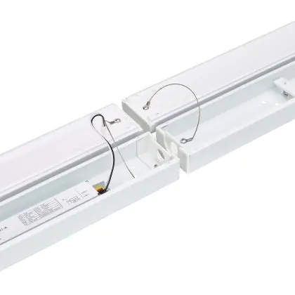 La réglette LED, Philips Réglette LED CoreLine BN126C 64.9W 7400lm - 830 | 150cm - 1x Câblage Traversant est conçue pour remplacer les réglettes TL-D traditionnelles et permettant d’économiser jusqu’à 50% d’énergie. Très souvent utilisé pour l’éclairage d’entrepôts, d’usines, de parking et d’autres grands espaces extérieurs. Très simple d’installation, cette réglette de 150cm peut se fixer au plafond et au mur et projette 3000K - Blanc Chaud, comme couleur de lumière. La Philips Réglette LED CoreLine BN126C 64.9W 7400lm - 830 | 150cm - 1x Câblage Traversant dispose d’un indice de protection IP20 à l’eau et la poussière et d’une résistance aux chocs IK04.