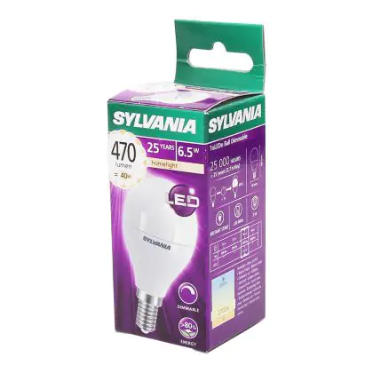 Cette ampoule Sylvania ToLEDo E14 Boule Dépolie 5.6W 470lm - 827 | Remplacement 40W avec son efficacité lumineuse de lumen par watt vous permettra de profiter d’un éclairage de qualité. Avec sa durée de vie de 25000 heures, vous n’aurez pas à vous soucier de son remplacement avant quelques années.
